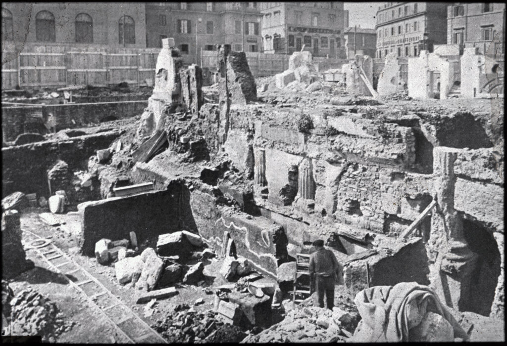 Scavi archeologici che portano alla luce l'Area Sacra, con conseguente demolizione di edifici e riorganizzazione dell'area